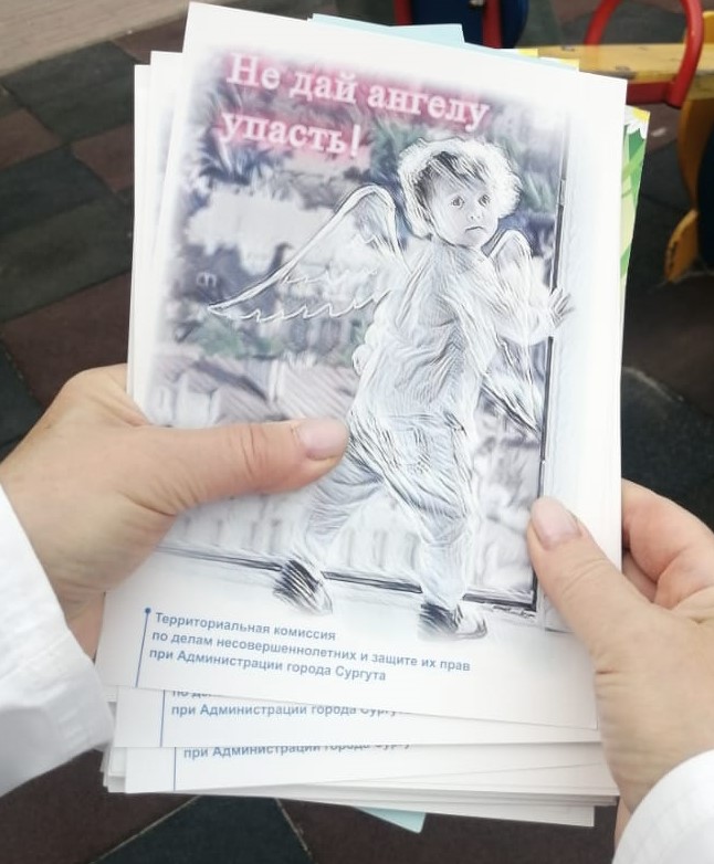 Инспектор по делам несовершеннолетних отдела полиции № 3 младший лейтенант полиции Елена Попушой и заместитель главного врача «Сургутской клинической травматологической больницы» Светлана Алиева на детских игровых площадках провели акцию «Не дай ангелу упасть»».