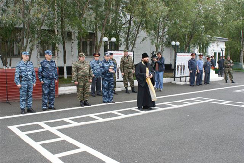 Торжественным маршем прошагал отряд по плацу Центра профессиональной подготовки, непосредственно подчиненном УВД по ХМАО-Югре. Иерей Антоний Исаков благословил милиционеров и окропил их «святой» водой.