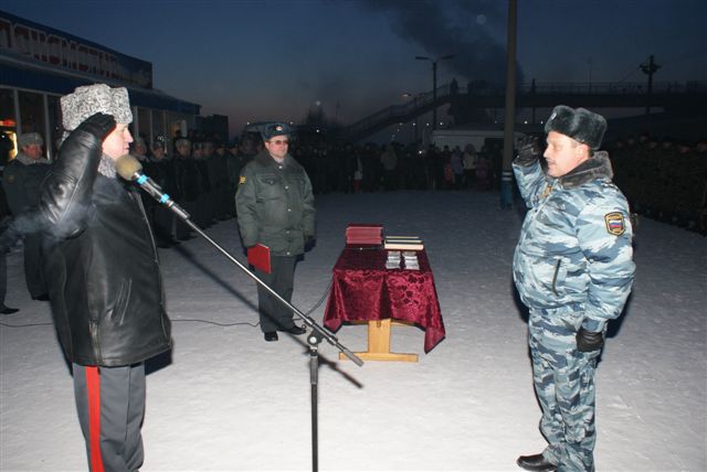 На железнодорожном вокзале «Сургут» во главе с начальником УВД по ХМАО-Югре генерал-майором милиции Николаем Гудожниковым собрались руководители горрайорганов внутренних дел и коллеги стражей порядка, прибывающих в составе сводного отряда милиции из Чечни. Родственники выглядывали своих близких, и на их щеках сверкали слезы радости. Морозным вечером для милиционеров, полгода отслуживших в Октябрьском районе Грозного, играл оркестр окружного УВД.