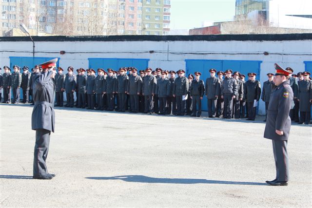 28 апреля сургутские полицейские перешли на летнюю форму одежды. Строевой смотр сотрудников УМВД России по г.Сургуту по традиции прошел на плацу ГИБДД. Александр Ерохов, начальник УМВД России по г.Сургуту лично проверил наличие служебных удостоверений, жетонов и других необходимых предметов, которые обязан носить при себе каждый сотрудник. Особое внимание уделялось внешнему виду полицейских. В ходе строевого смотра у сотрудников были проверенны знание закона «О полиции».