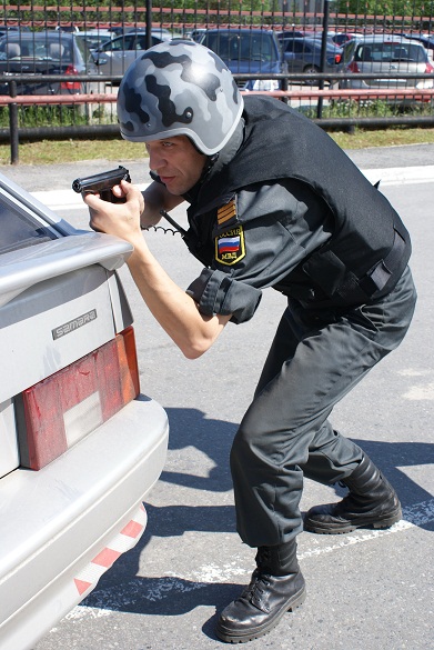 По словам старшего полицейского группы задержания ОВО УМВД России по г.Сургуту сержанта полиции Алексея Масликова: «Сигнал тревоги поступает на пульт централизованной охраны отдела вневедомственной охраны. Из дежурной части мы получаем сигнал с указанием особенностей объекта и прибываем на место. Далее блокируем объект и докладываем в дежурную часть, ждем дальнейших указаний. На каждый сигнал тревоги мы выезжаем как на «боевой». О том, что этот вызов являлся учебным, узнали после того, кода подошел проверяющий и дал команду «Отбой»».