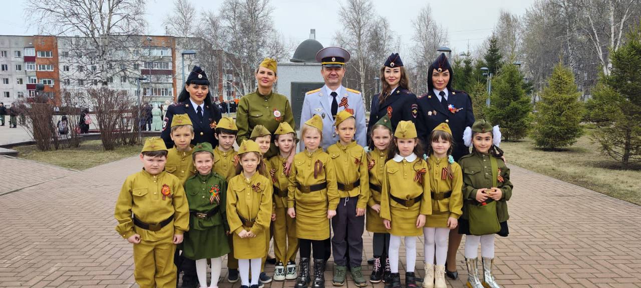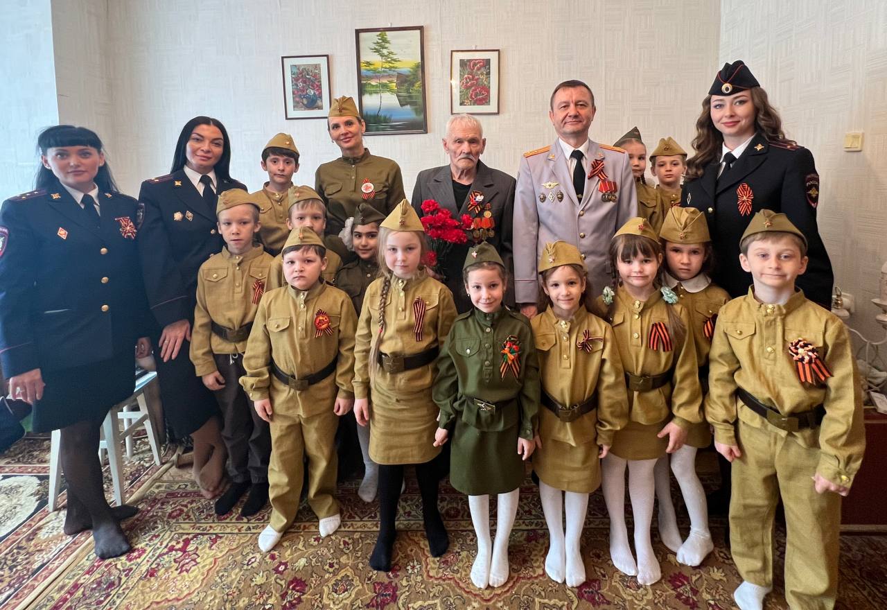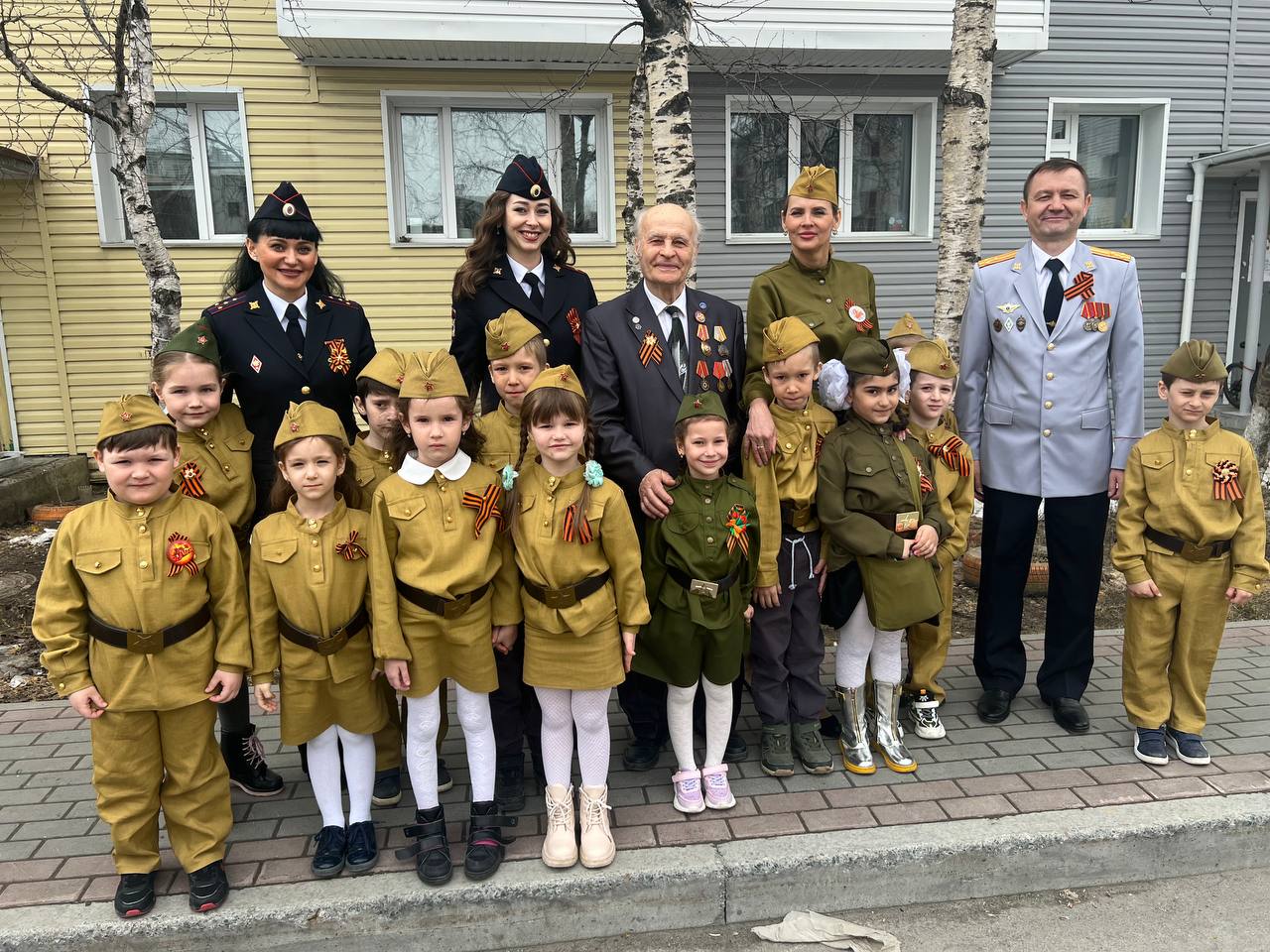 Кроме того, сотрудники отела по работе с личным составом УМВД России по г. Сургуту с воспитанниками группы «Росинка» детского сада «Берёзка» поздравили ветеранов с великим праздником- Днём Победы, спели песни и вручили им цветы.