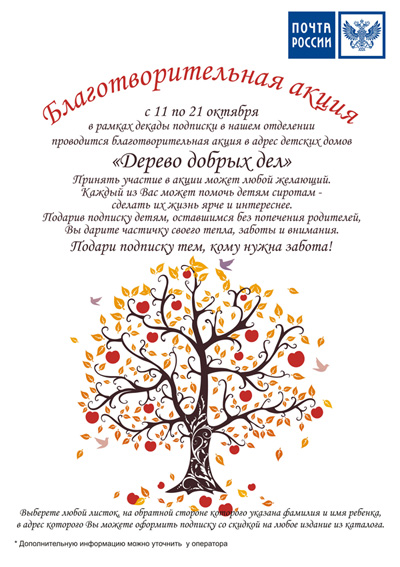 «Дерево добрых дел» - благотворительная акция Почты России в рамках Декады подписки