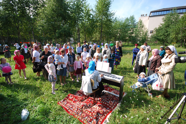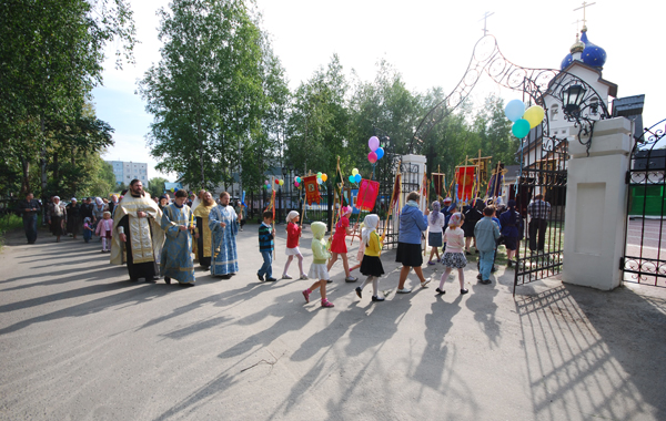 Праздничная Божественная Литургия завершилась крестным ходом. Впервые продолжением праздника стали мероприятия для детей в парковой зоне храма. Гостям были представлены фотовыставка «Славянский ход 2010» и выставка детских рисунков «Божий мир».