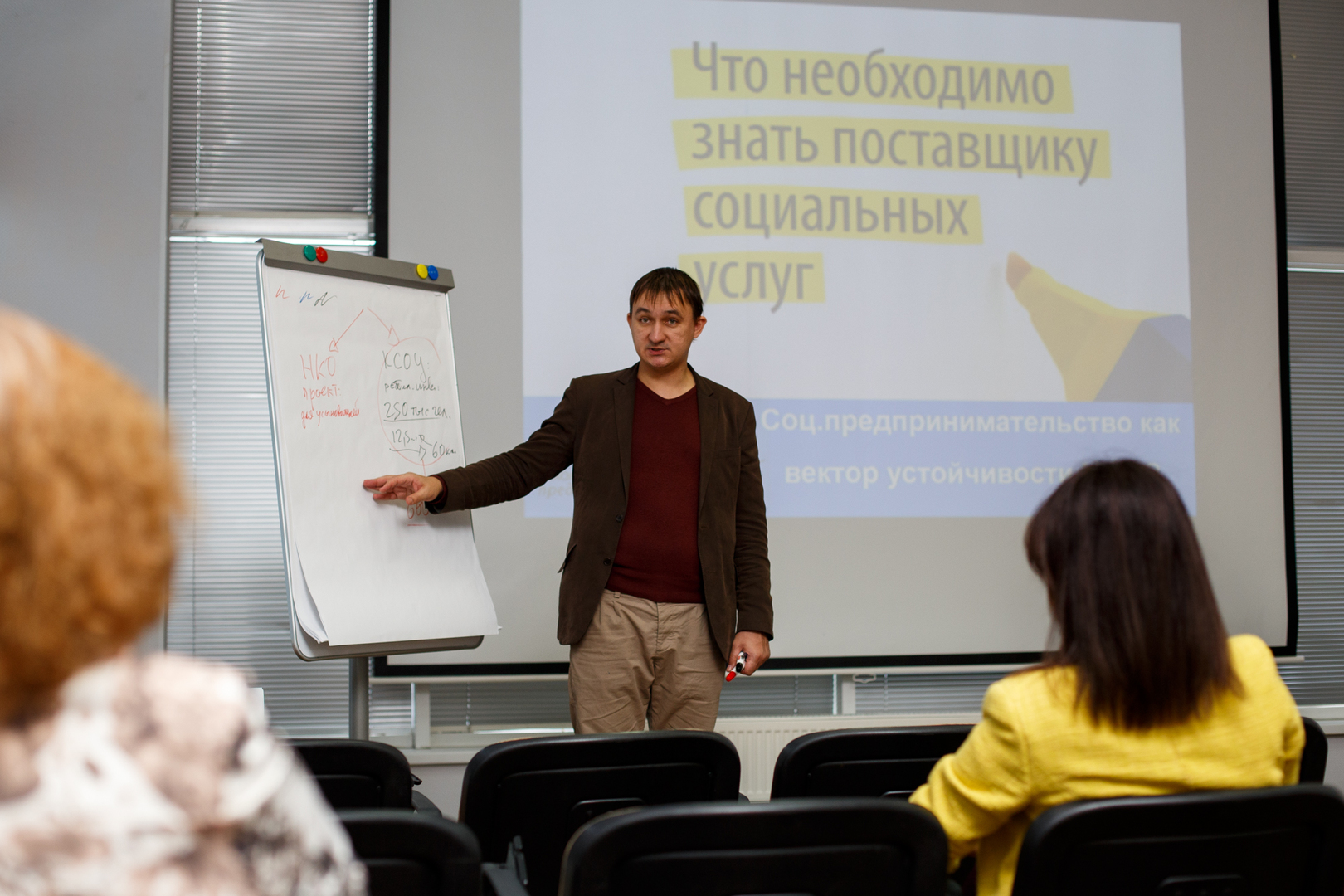Ведущий, Евгений Дубровин, руководитель Школы социального предпринимательства «Новотерра» (город Новосибирск), руководитель Бизнес-инкубатора Новосибирского государственного университета экономики и управления, соучредитель фестиваля «Бизнес PRODOBRO», провел семинар в форме диалога, что позволило лучше раскрыть заявленную тему.