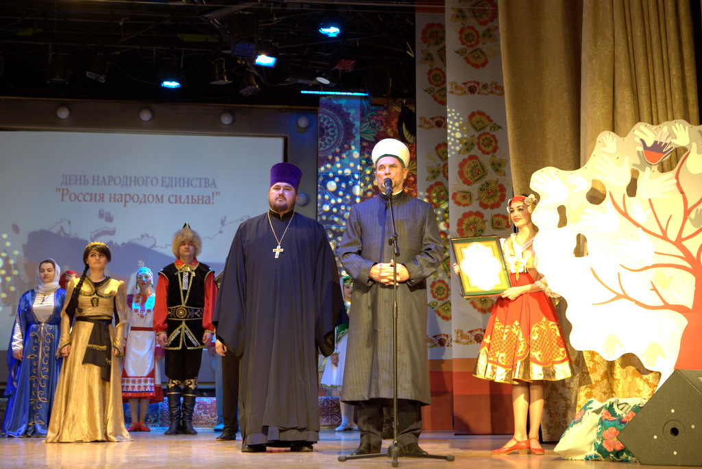 Участников и гостей концерта с праздником поздравил настоятель прихода храма в честь святителя Николая Чудотворца о. Владислав Бронников, по словам которого вера объединяет общество и помогает изменять жизнь к лучшему. «Единства, согласия и благополучия», − пожелал муфтий регионального духовного управления мусульман Тагир-хазрат Саматов.