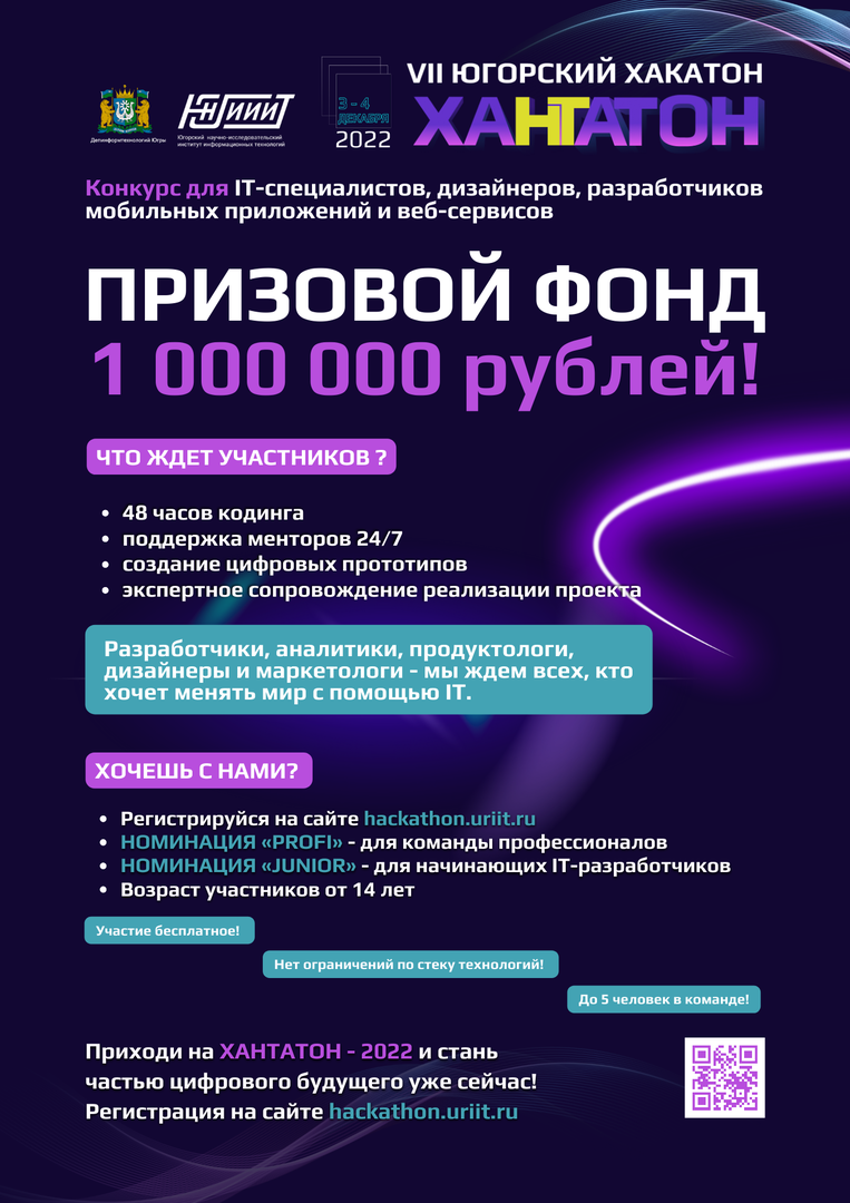 Успевайте подать заявку на участие в ХАНТАТОН – 2022 на сайте hackathon.uriit.ru. Станьте частью цифрового будущего уже сейчас!