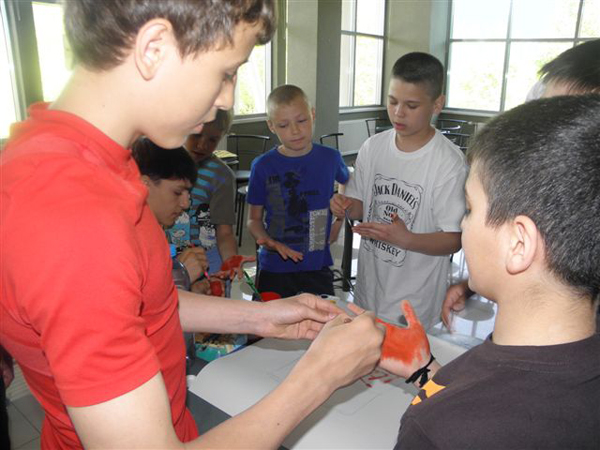 45 воспитанников отделения мини-футбола, тяжелой атлетики и бокса под руководством тренеров-преподавателей Головачева А.В., Балуева А.П., Галимьянова Т.Ж. на смене лагеря проводят в нетрадиционном укороченном режиме не только особый тренировочный процесс, но и участвуют в создании нового проекта лагеря «Деятельность Фотостудии и комментаторского кружка». Юные спортсмены обучаются на занятиях основам фотодела, с увлечением создают фото летопись жизни отряда, лагеря, оформляют фотоколлажи и альбомы.
