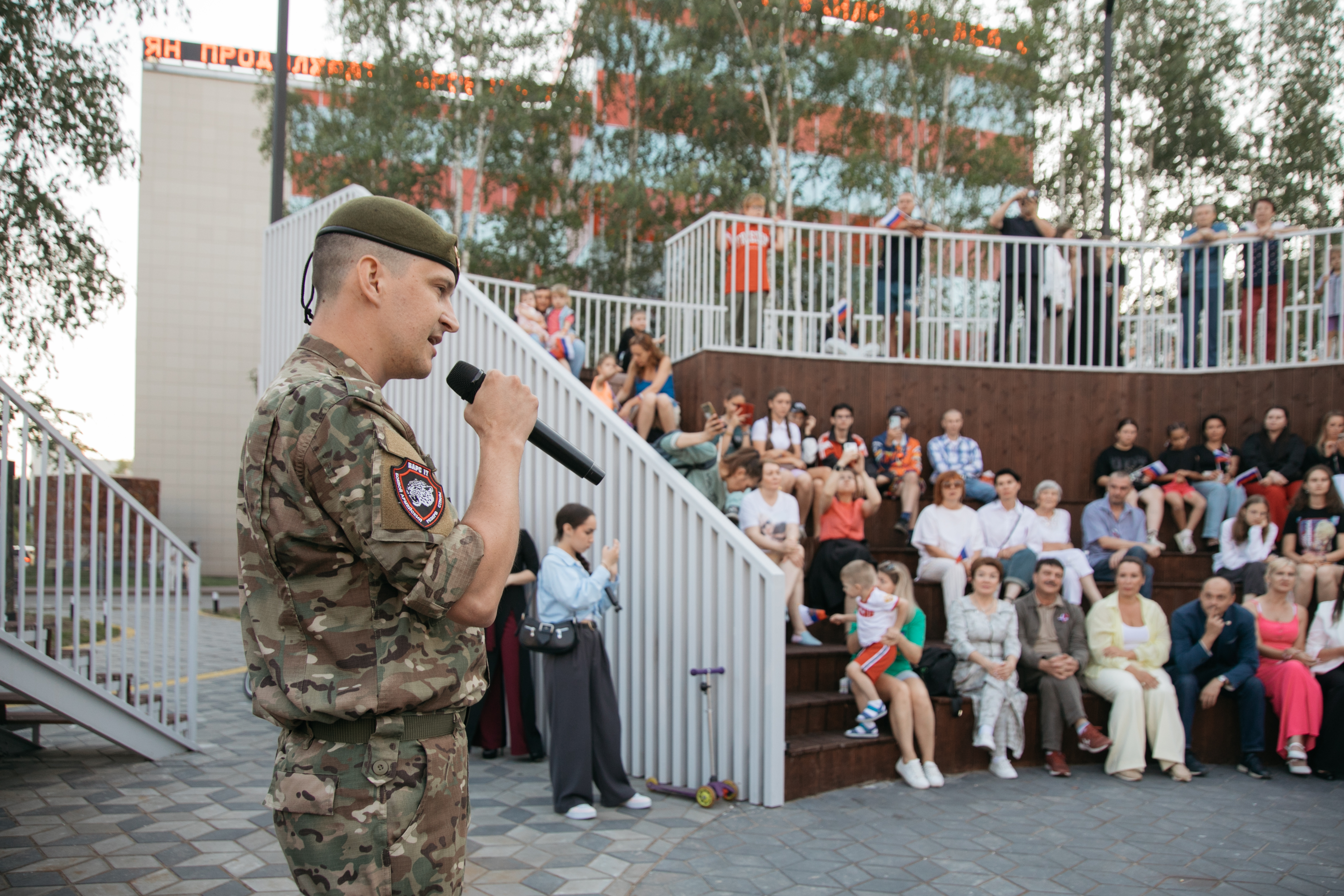 22 августа в сквере журналиста состоялся музыкальный фестиваль «Улица» с участием молодежных коллективов и участников специальной военной операции, на котором также был развернут государственный символ.