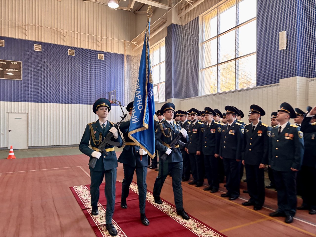 Открытие мероприятия началось с построения сотрудников Сургутского местного пожарно-спасательного гарнизона, а также курсантов класса пожарно-спасательного профиля. Чётким строевым шагом знамённая группа внесла знамя пожарно-спасательного лицея.