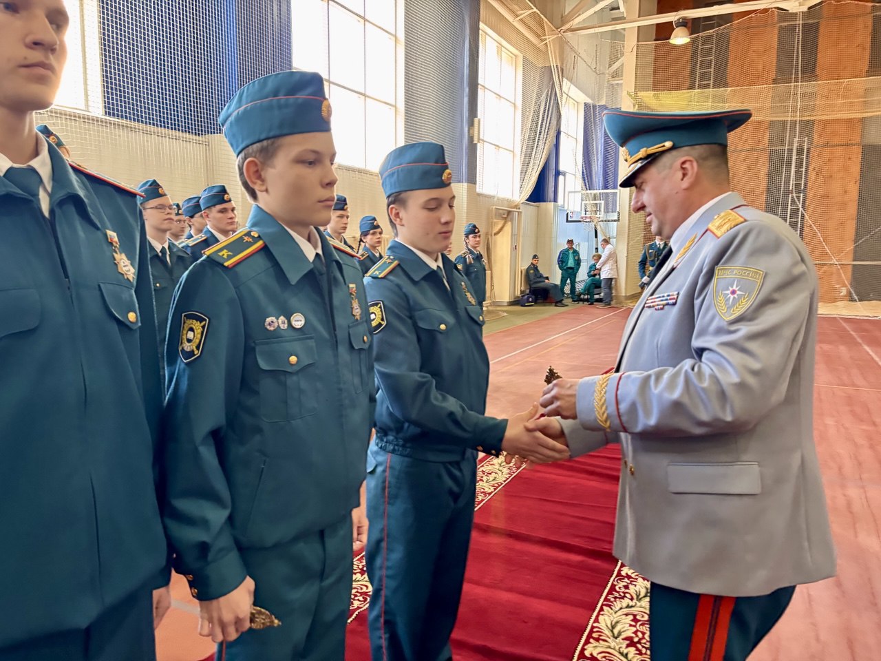 Более опытным кадетам в лице одиннадцатиклассников были присвоены учебные звания и вручены ценные подарки за образцовое исполнение служебных обязанностей, достижение высоких результатов в спорте, а также за активное участие в общественной жизни пожарно-спасательного класса.