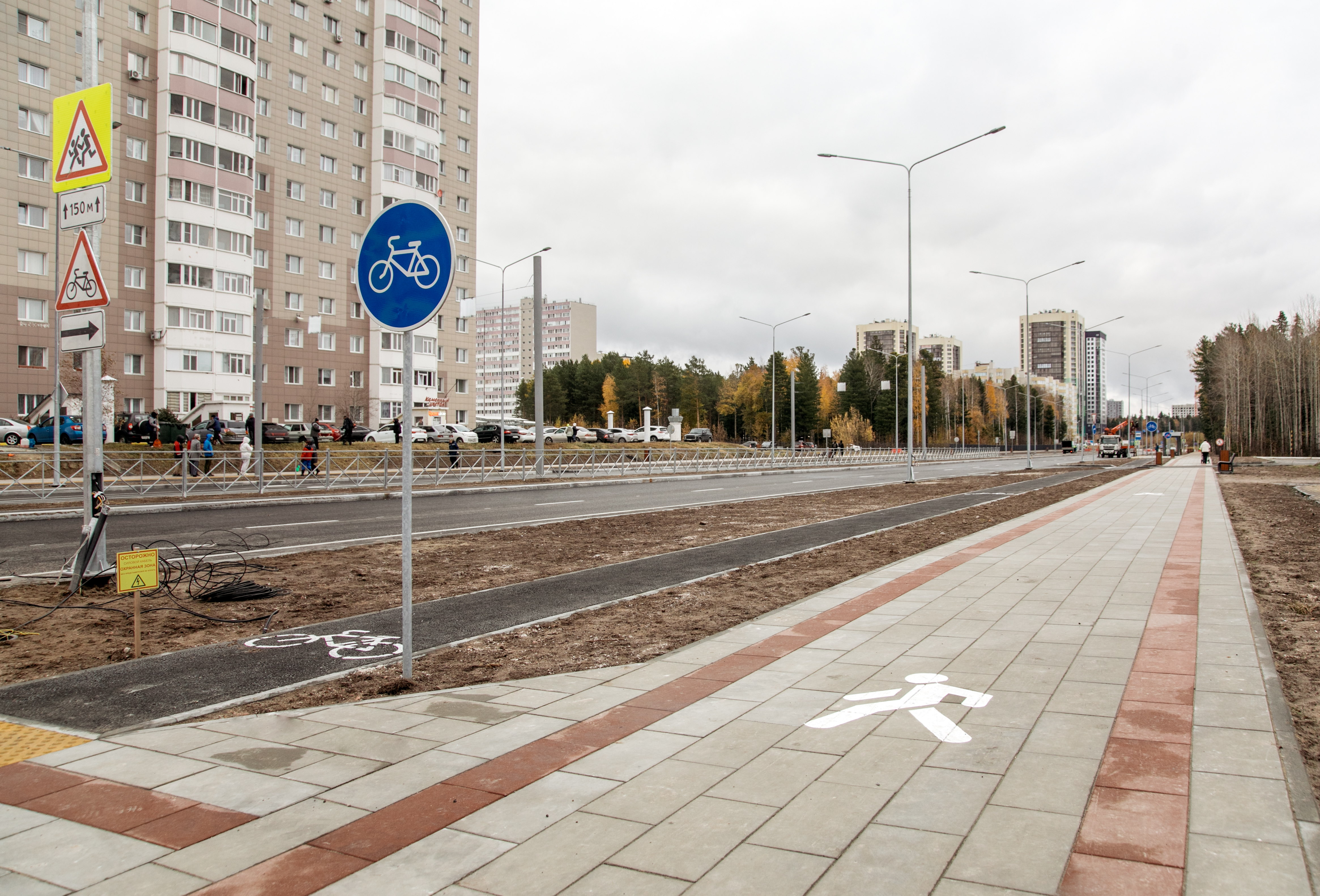 Протяженность новой дороги – 0,37 км. Предусмотрена современная инфраструктура, которая обеспечит комфорт и безопасность для всех участников движения: велодорожка шириной 1,5 м, тротуары шириной 3 м, карманы для остановки автобусов, система дождевой канализации, освещение и система видеонаблюдения.