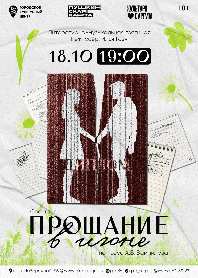 Городской культурный центр приглашает на спектакль «Прощание в июне» по пьесе А.В. Вампилова