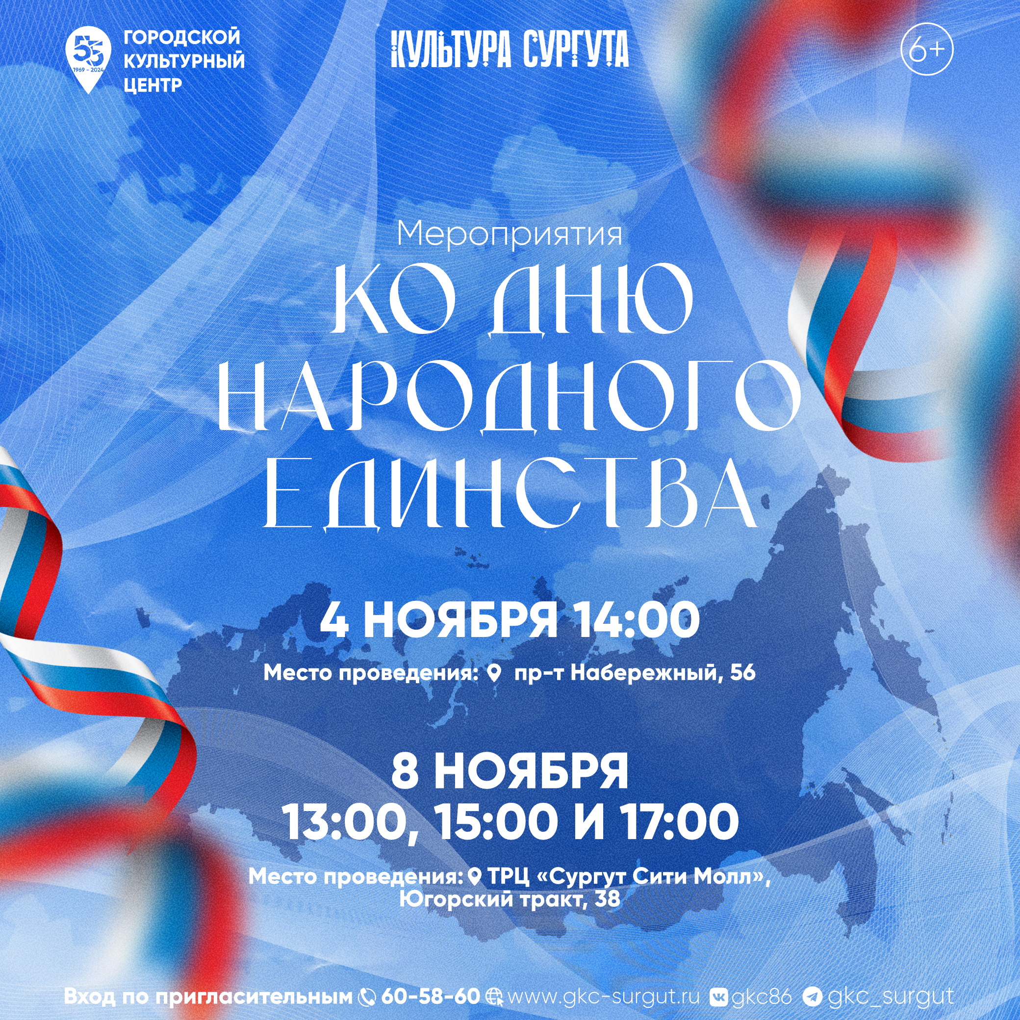 4 и 8 ноября Городской культурный центр | Строитель | Сургут приглашает сургутян отпраздновать День народного единства.