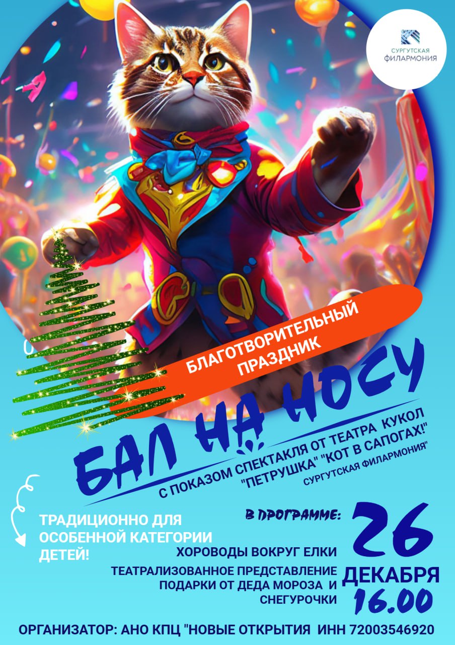 26 декабря 2025 года в 16:00 на сцене Сургутской филармонии, состоится , с показом сказки от театра кукол и актеров «Петрушка» «Кот в сапогах».