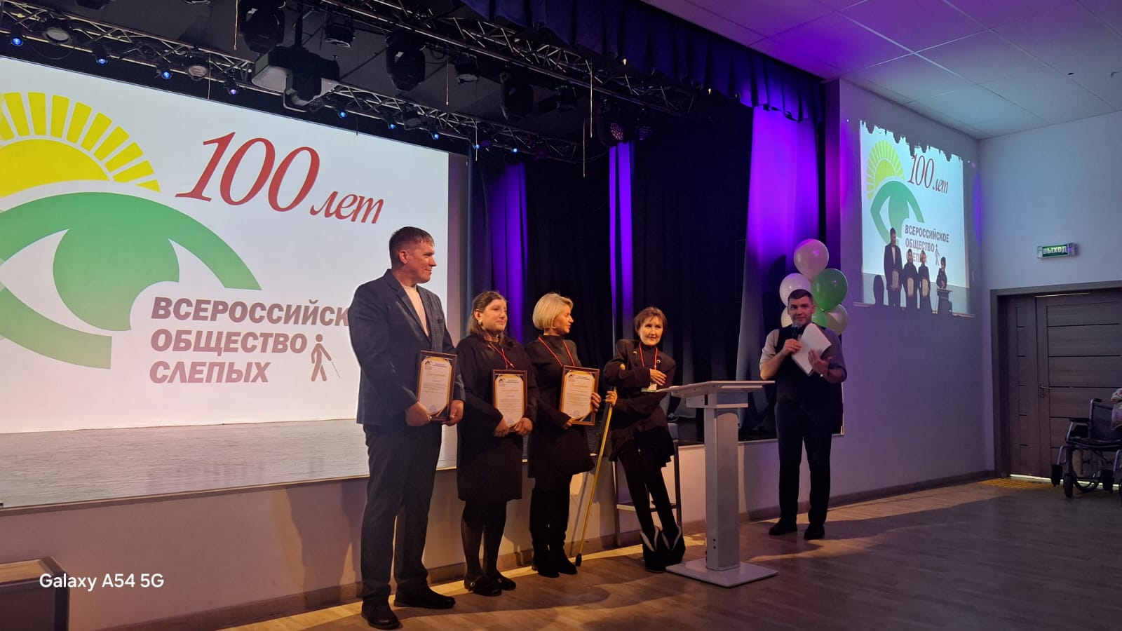 В торжественной обстановке руководитель сургутского отделения Всероссийского общества слепых Рада Владимировна Борзова вручила членам общества три Юбилейные медали «100 лет образования Всероссийского общества слепых» в том числе одна медаль была лично для Рады Владимировны. Два члена общества были отмечены медалью Почетного члена ВОС.