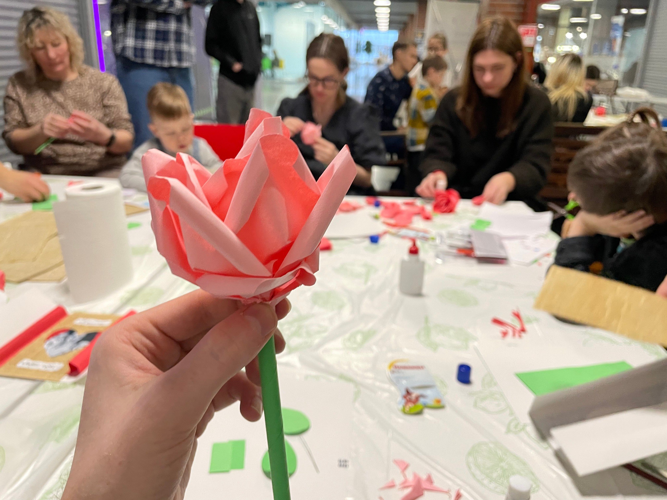 Центральным событием мероприятия стал мастер-класс по созданию поздравительных открыток. Дети и взрослые с особым трепетом и вдохновением мастерили своими руками яркие, индивидуальные поздравления для самых дорогих людей – своих мам. Этот творческий процесс не только подарил участникам радость созидания, но и стал важным шагом в развитии их коммуникативных навыков и социализации.