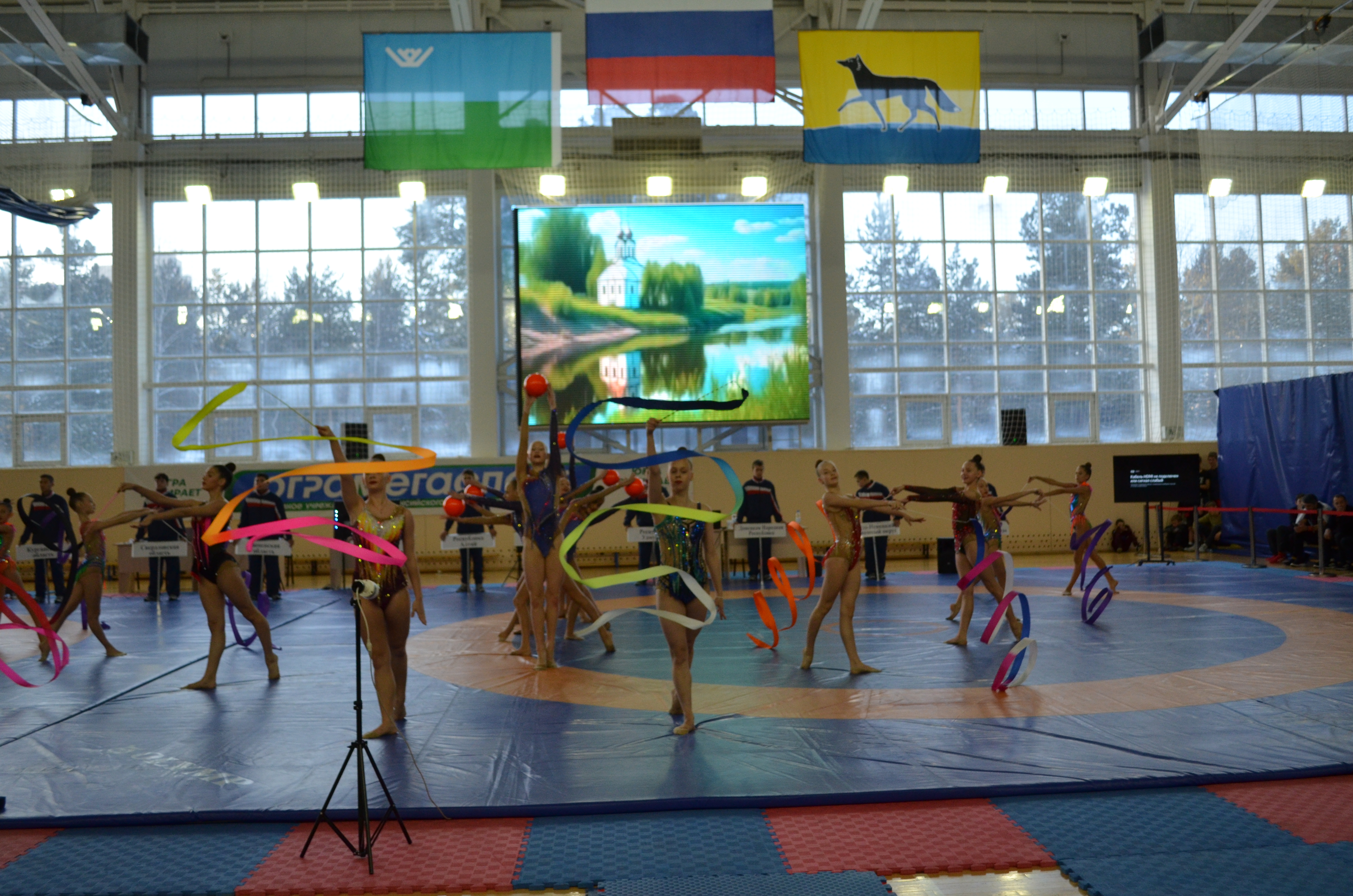 Гостей и участников соревнований с показательным номером приветствовали спортсмены отделения художественной гимнастики спортивной школы олимпийского резерва №1 – победители и призеры всероссийских, межрегиональных и региональных соревнований (тренер-преподаватель высшей квалификационной категории Галина Олеговна Гончарук).