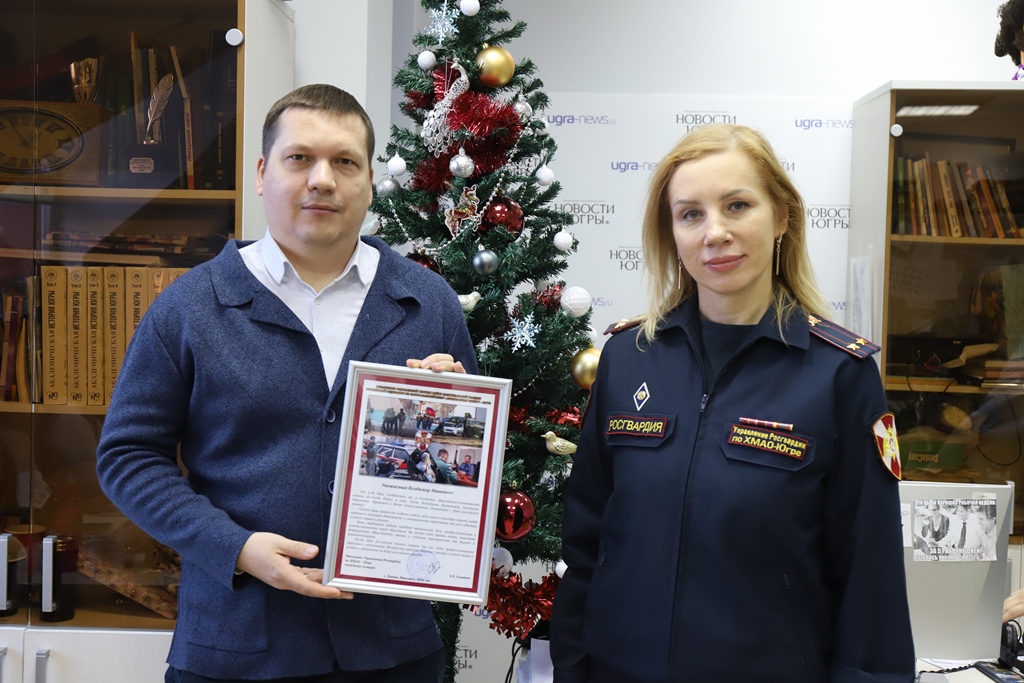 В Ханты-Мансийске от имени начальника Управления Росгвардии по ХМАО – Югре полковника полиции Евгения Симакова поздравительные адреса вручены ведущим журналистам газет «Аргументы и факты – Югра» и «Новости Югры».