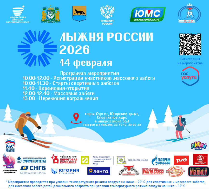 Городская лыжная гонка «Сургутская лыжня – 2026» в рамках XLIV Всероссийской массовой лыжной гонки «Лыжня России – 2026»