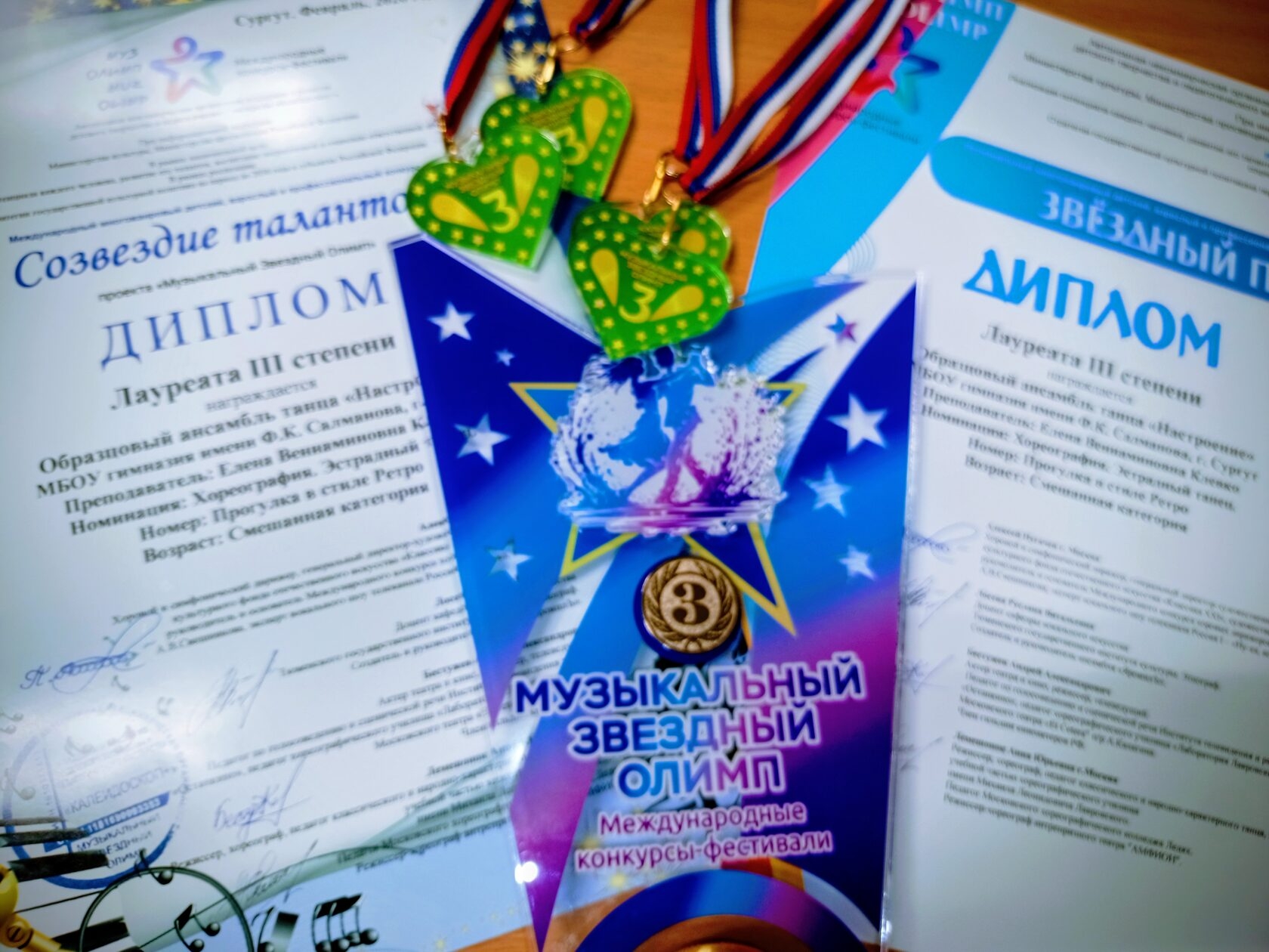 Дипломом I степени жюри оценило номер «Пластинка» в номинации «Эстрадный танец» в исполнении средней группы ансамбля: Беспоместных Евгении, Комиссаровой Елены, Кузнецовой Софьи, Многиной Дарьи, Мухасиповой Алины, Можаевой Виктории, Олюшкина Семёна, Поварчук Арины, Чайкиной Екатерины, Чумаковой Анны, Шадюк Виктории.