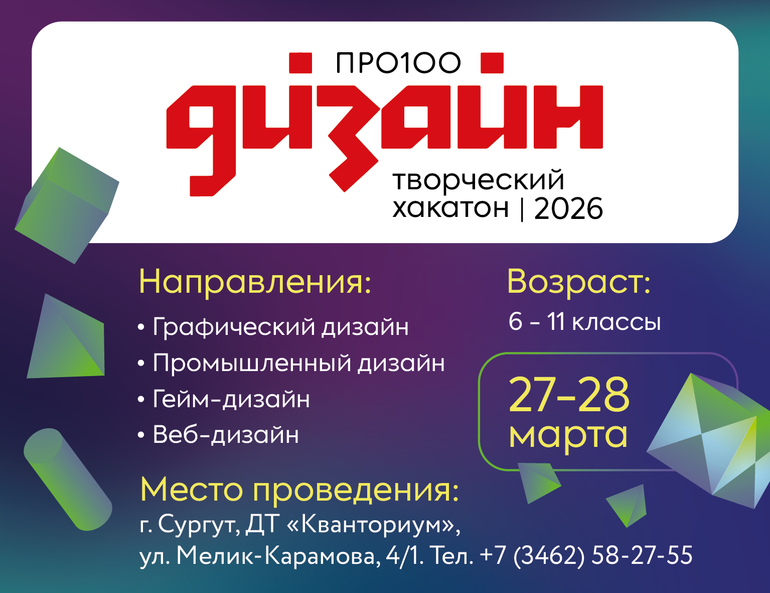 Дата проведения Хакатона «Про100Дизайн»: 27−28 марта 2026 г.