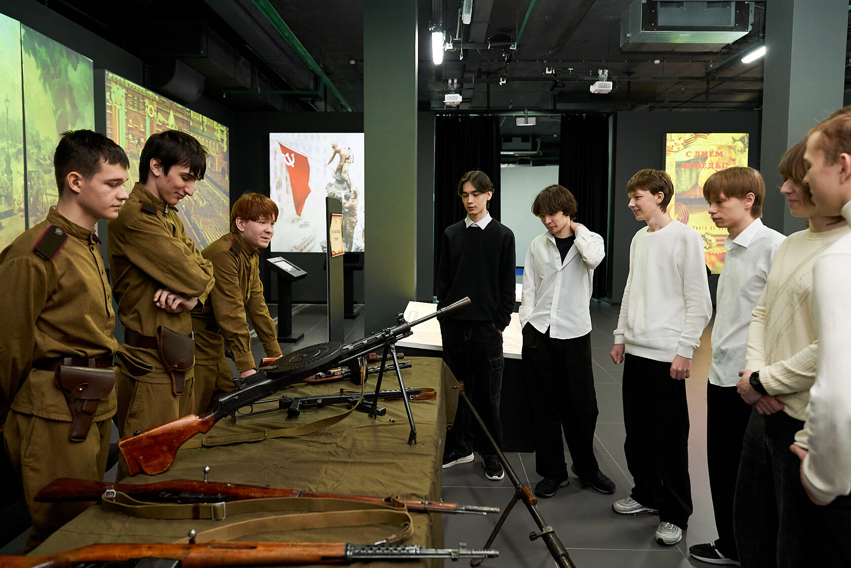 Сами задания на станциях требовали от ребят самых разных качеств. Где-то нужно было проявить эрудицию и знание исторических фактов, где-то – умение работать с образами и символами эпохи, где-то – быстро ориентироваться в военной тематике, узнавать образцы вооружения, соотносить события, имена и достижения. Отдельные испытания обращали внимание школьников на то, что победа в любом сражении зависит не только от храбрости солдата и таланта полководца, но и от врачей, инженеров, ученых, конструкторов, разведчиков, шифровальщиков – всех тех, кто приближал общий результат своим трудом, знаниями и служением Отечеству.
