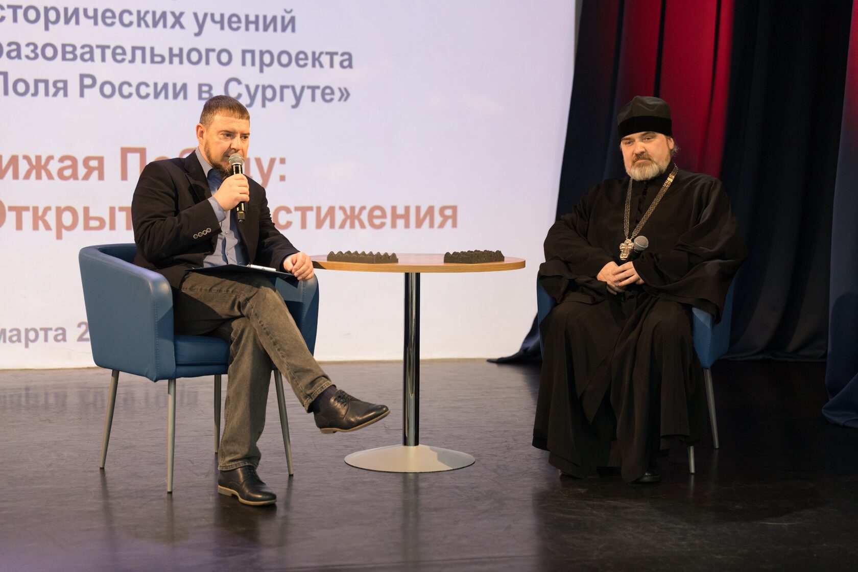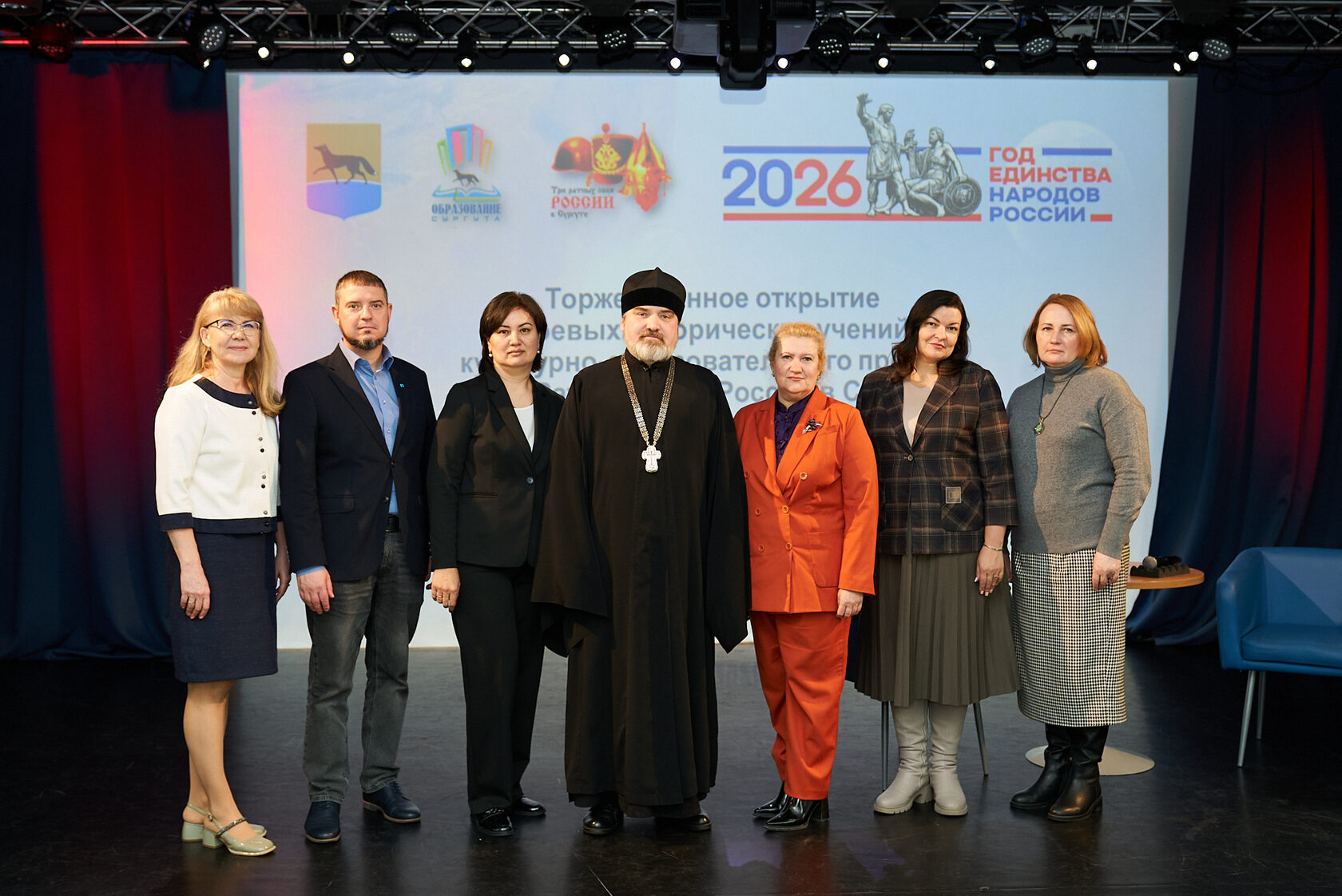 На торжественном открытии выступили генеральный директор АНО «Центр патриотических проектов “Моя история”» А. Н. Никитин и протоиерей, благочинный Сургутского городского благочиния отец Антоний Исаков. Их участие подчеркнуло, что разговор об истории сегодня невозможен без разговора о ценностях, о духовной опоре народа, о преемственности поколений и о том, как историческая память формирует гражданскую позицию молодых людей.