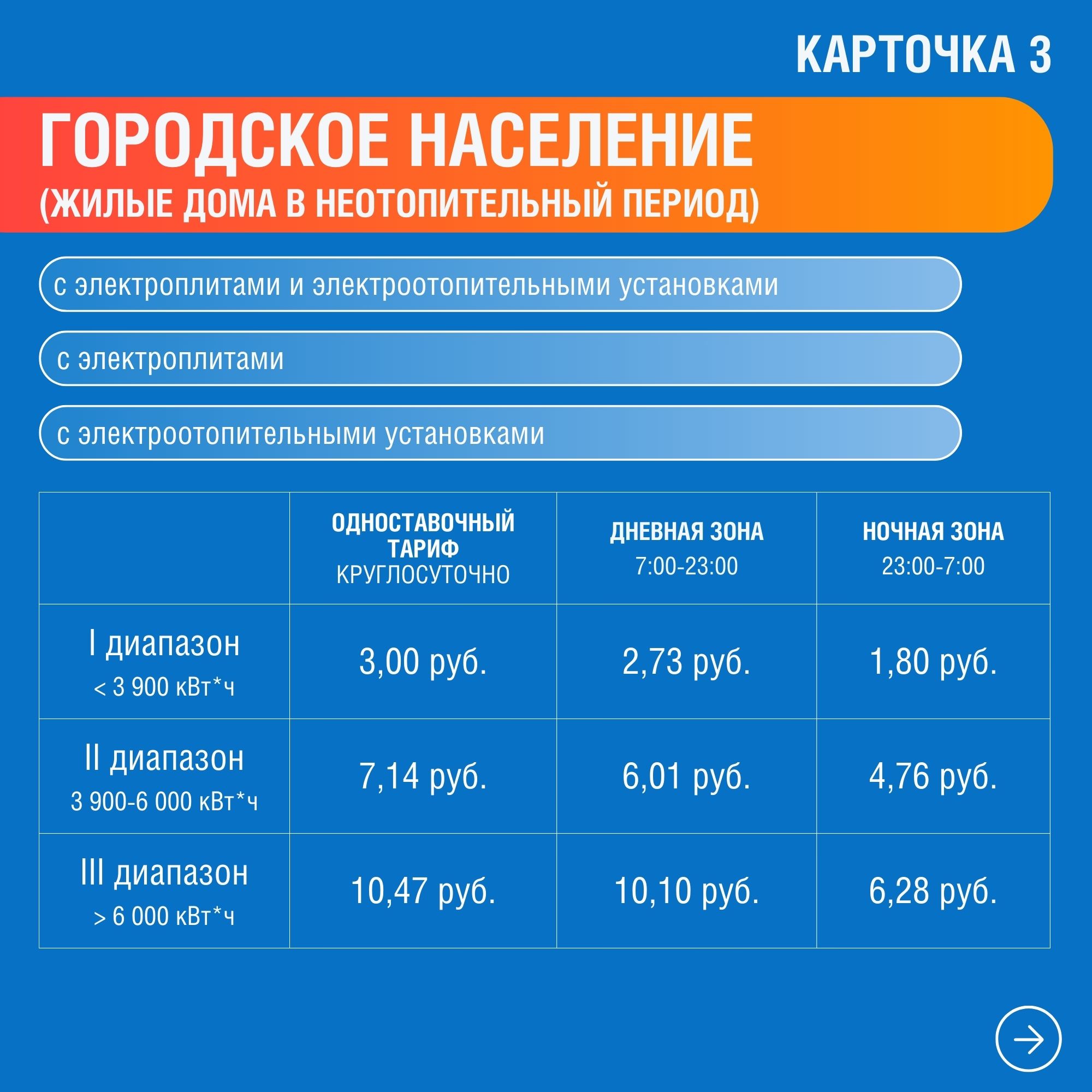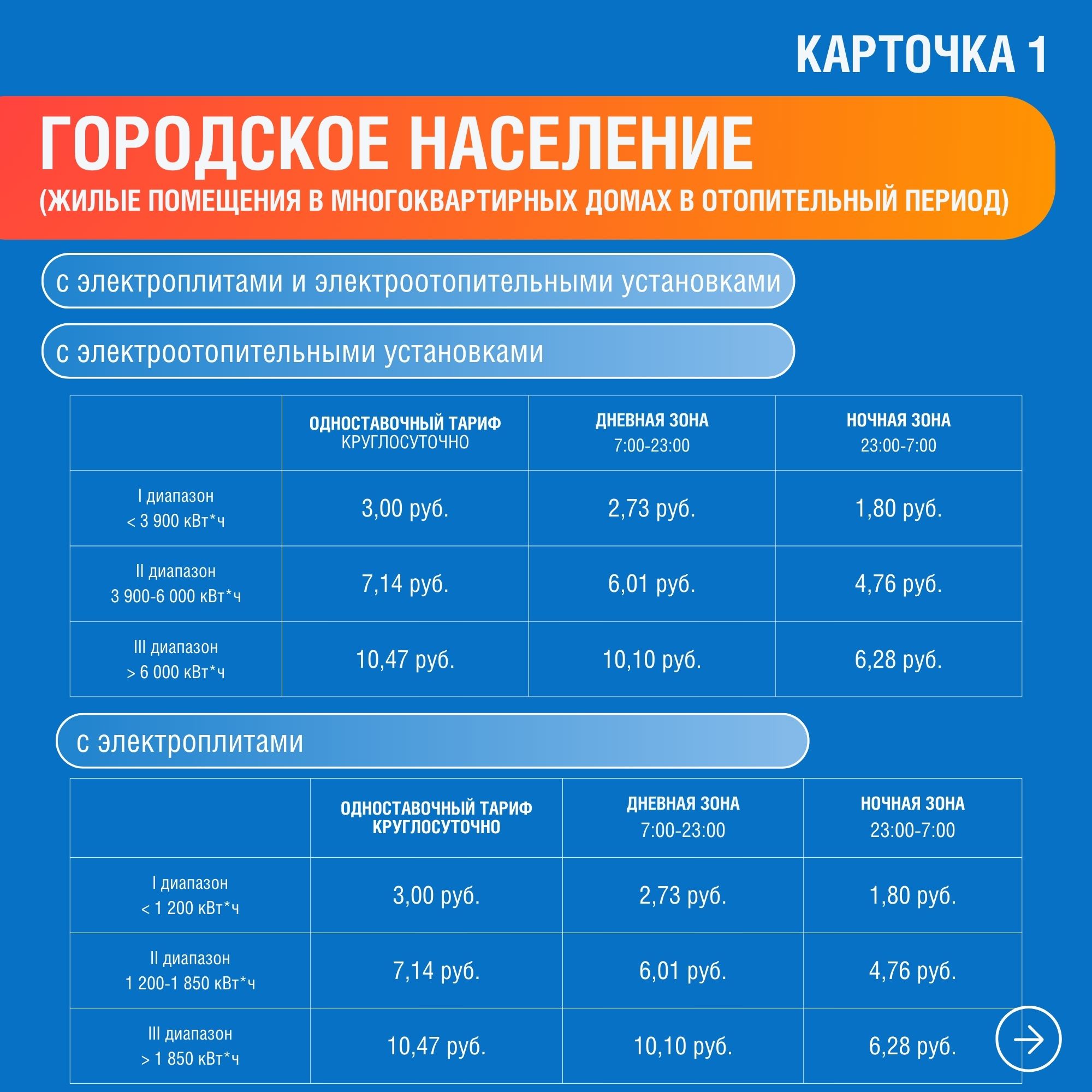 Для удобства граждан энергетики также разработали карточки с распределением по тарифным группам населения и приравненных к нему категорий потребителей по ХМАО-Югре, ЯНАО и Тюменской области.