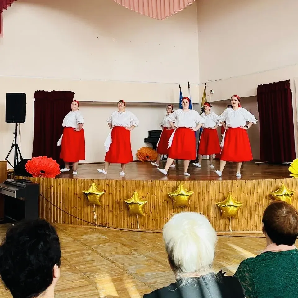Хоровое исполнение педагогами песен «Как прекрасен этот мир» и «Мы желаем счастья Вам» тепло встретили зрители, как и вокальный талант социального педагога Ермиловой Е. Г. и танцевальный номер «от Волги до Енисея», исполненный учителями.