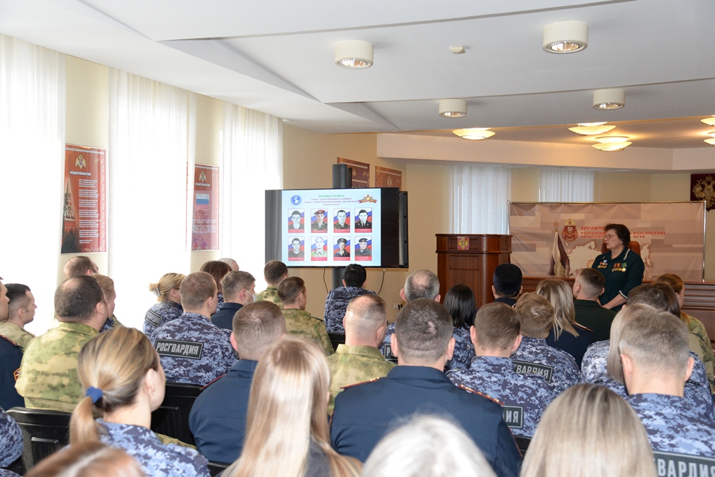 По окончании встречи росвардейцы почтили память ребят минутой молчания с показом видеопрезентации с портретами Героев Югры.