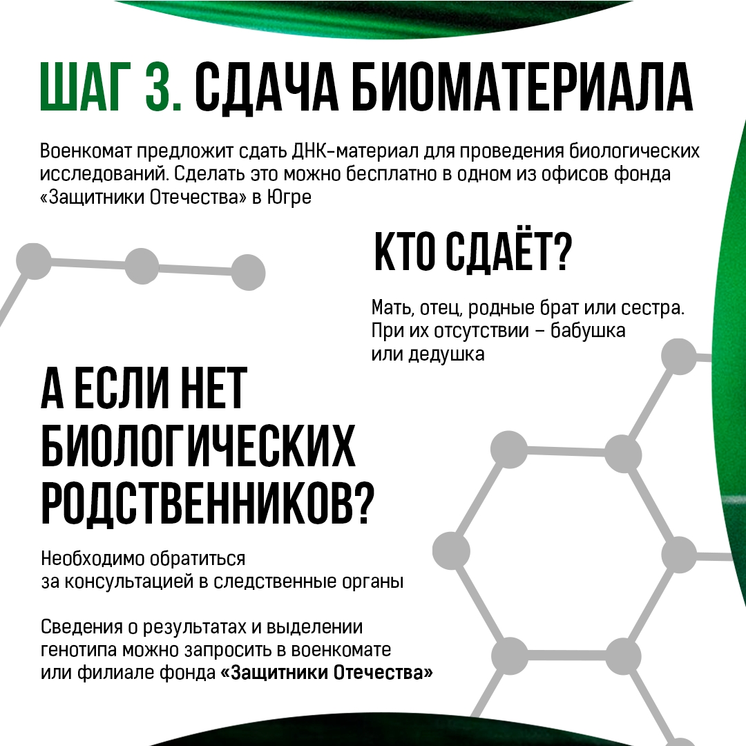 Военкомат предложит сдать ДНК-материал для проведения биологических исследований. Сделать это можно бесплатно в одном из офисов фонда "Защитники Отечества" в Югре.