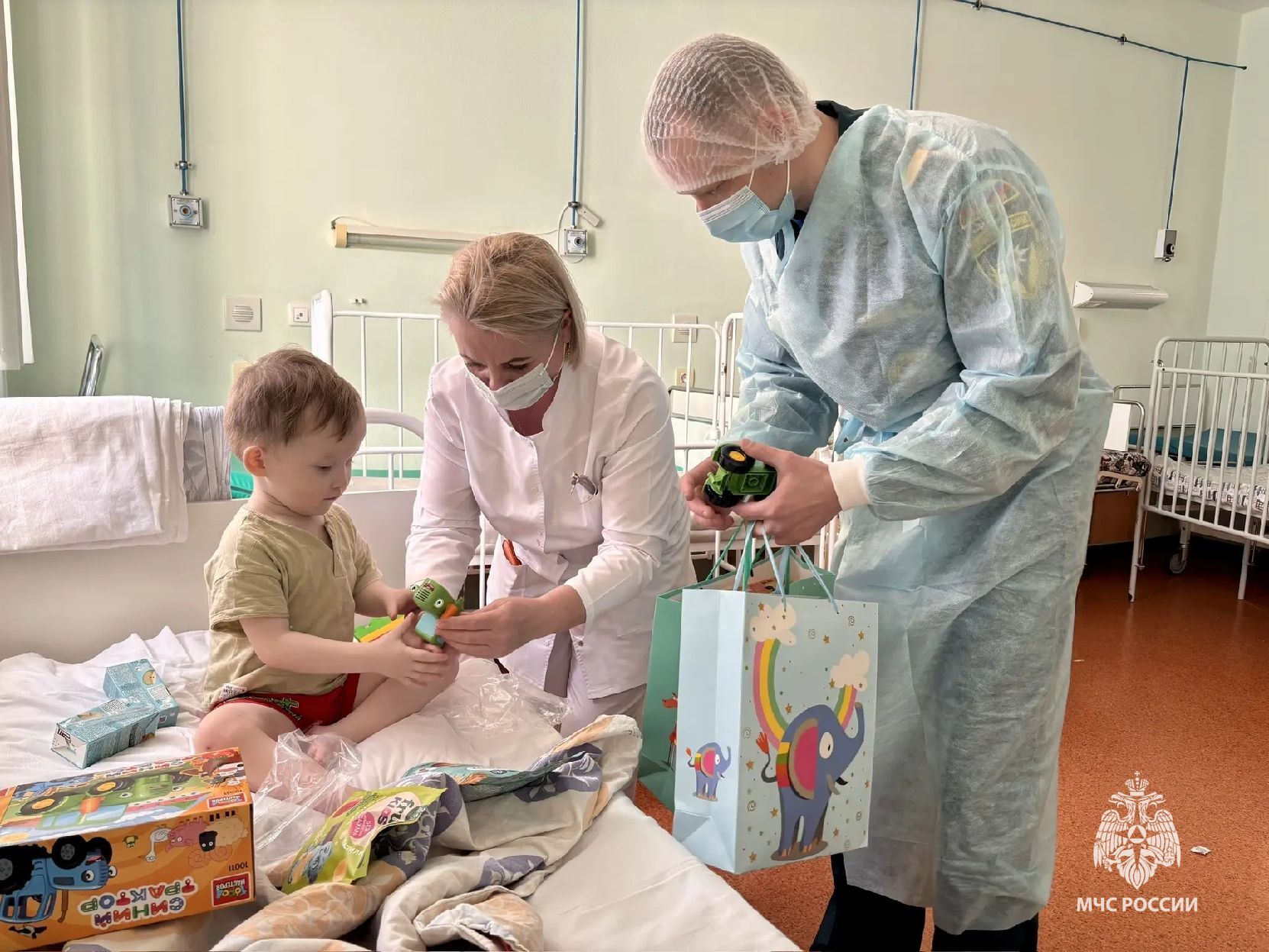 Они пришли в гости с гостинцами и подарками, чтобы скрасить будни малышей. Ведь эти дети находятся в больнице без родителей и вдали от дома.