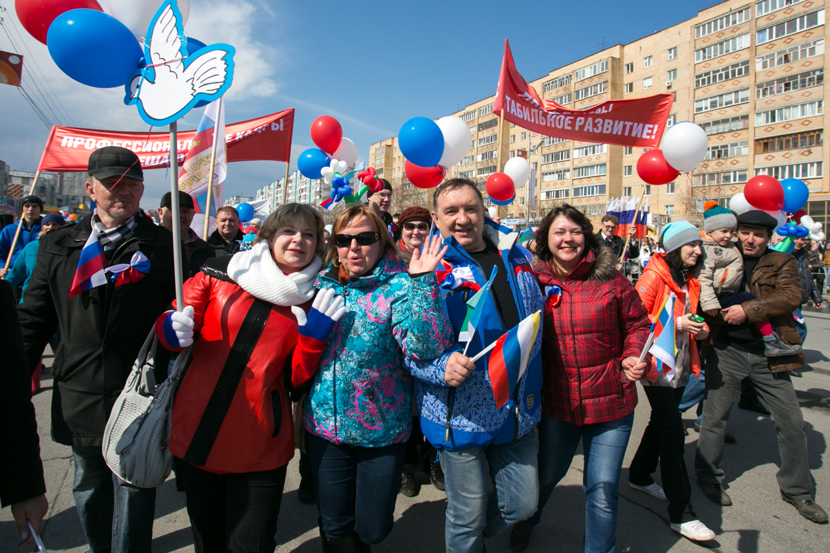 1 мая сургутяне отметили День Весны и Труда праздничным шествием по центральной улице города.