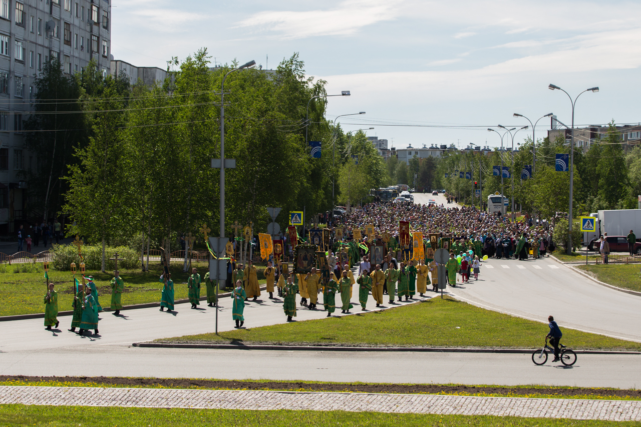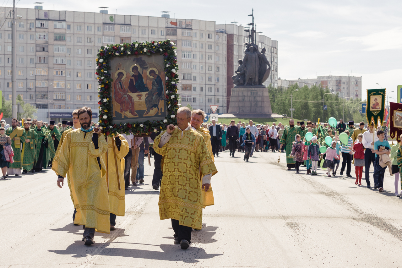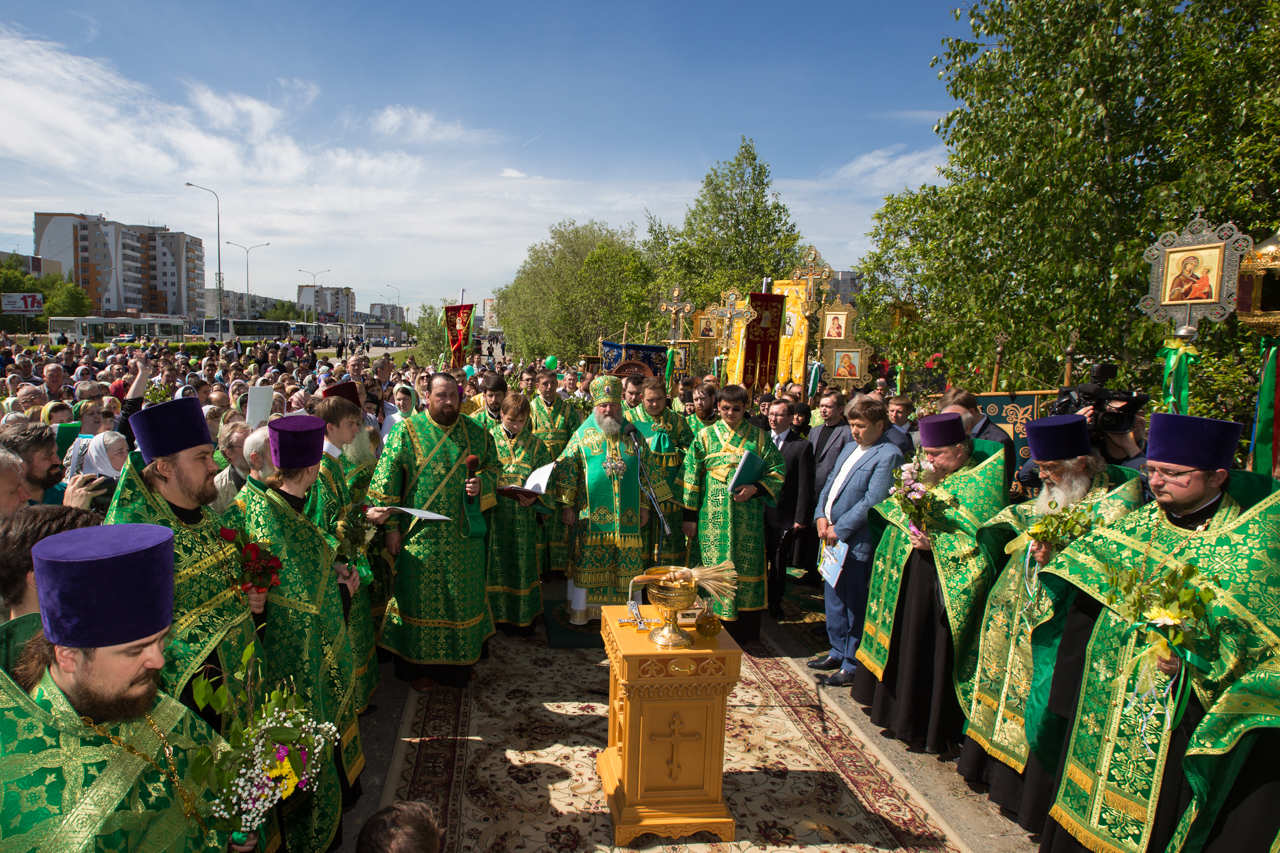 31 мая сургутяне традиционно в праздник Святой Троицы прошли крестным ходом по городу. В этом году православные горожане во главе с епископом Павлом совершили чин закладки камня на месте строительства Свято-Троицкого собора.