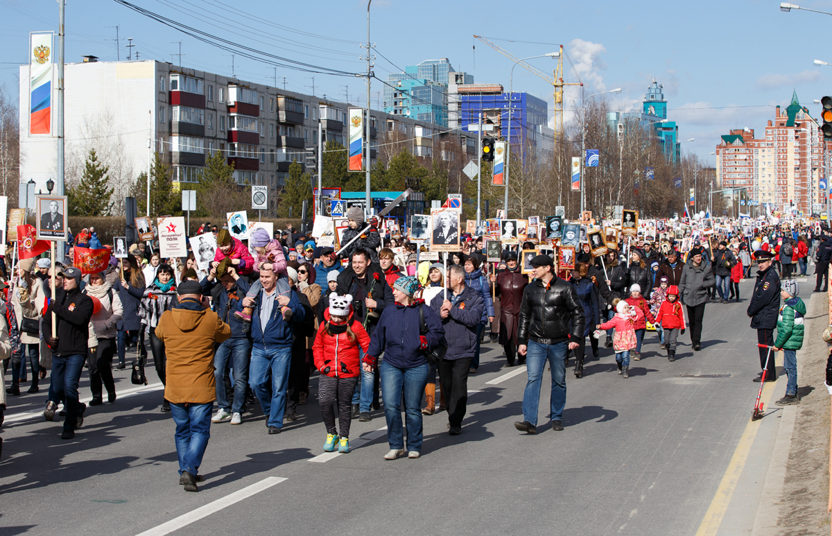9 мая сургутяне приняли участие в массовой акции «Бессмертный полк». Жители города прошли по улицам Сургута с портретами родственников-фронтовиков. В акции приняло участие более 20 тысяч человек.