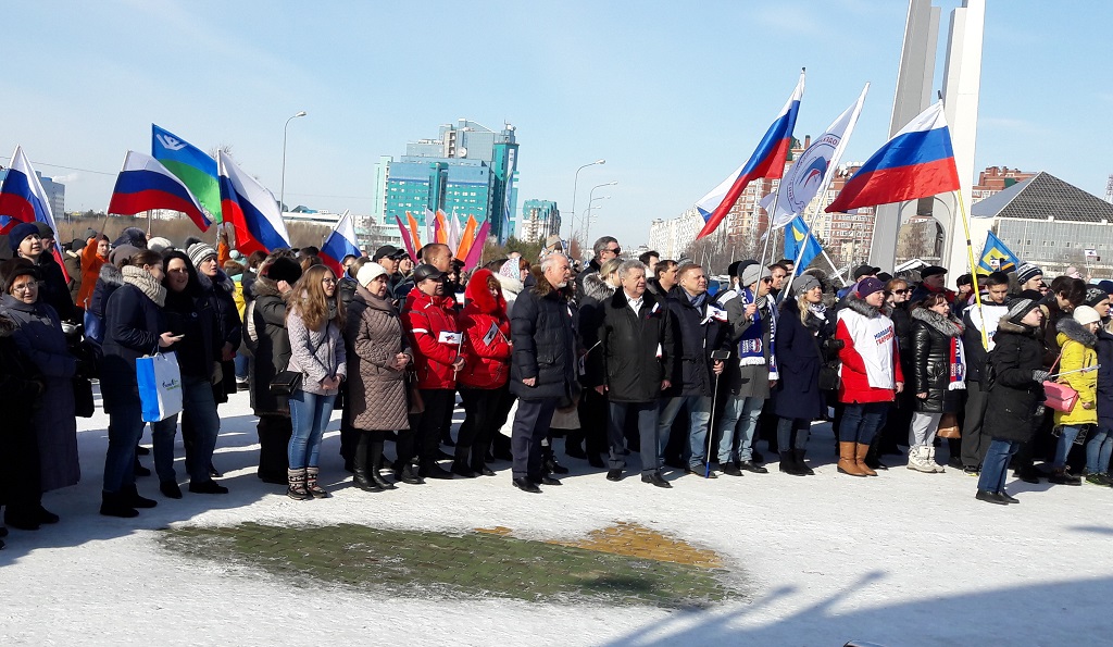 18 марта 2017 года на площади перед главный корпусом Сургутского государственного университета собрались студенты, молодежь,  представители ветеранских организаций, предприятий и учреждений, политических партий, чтобы третий раз отметить годовщину воссоединения Республики Крым и города федерального значения Севастополь с Россией.